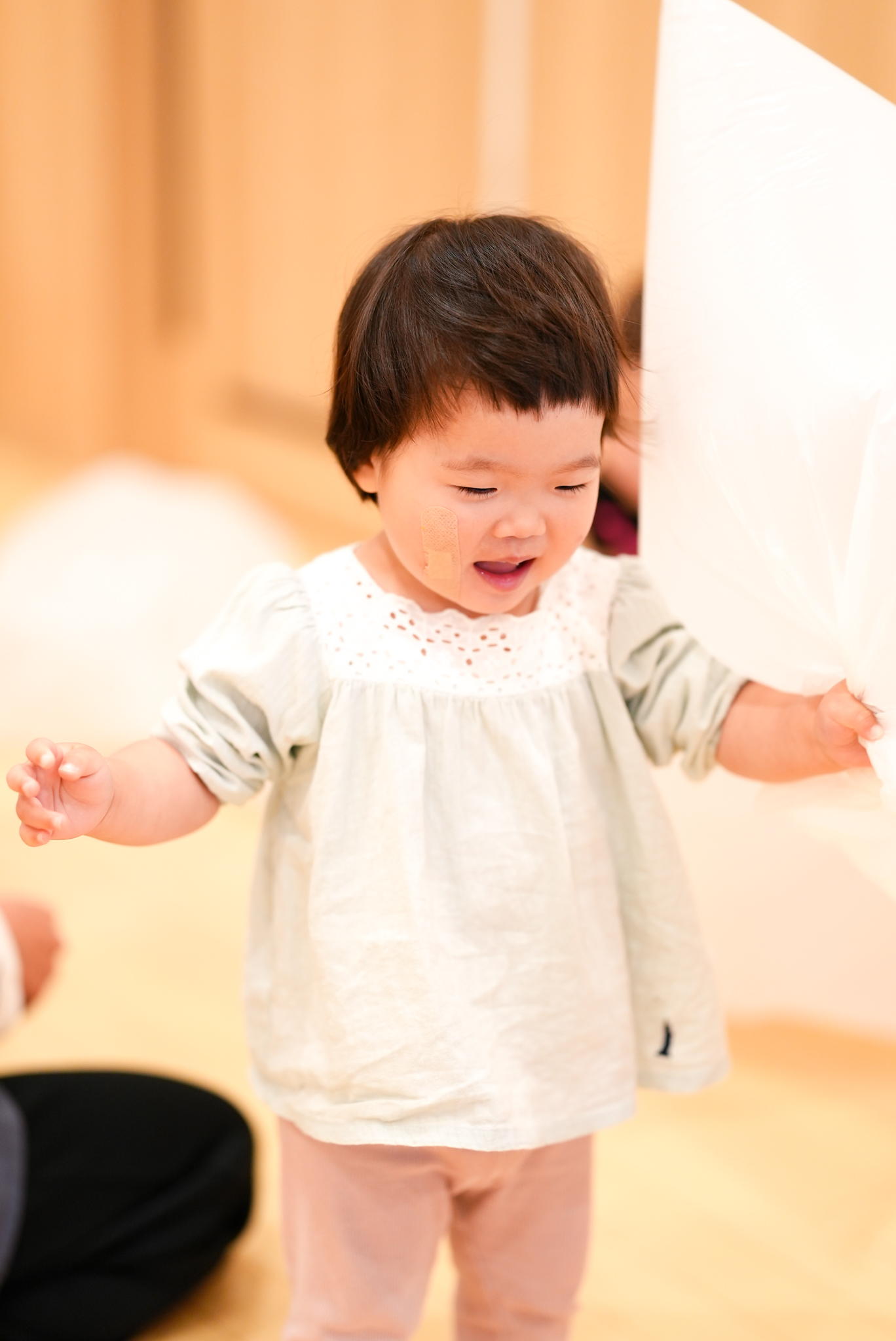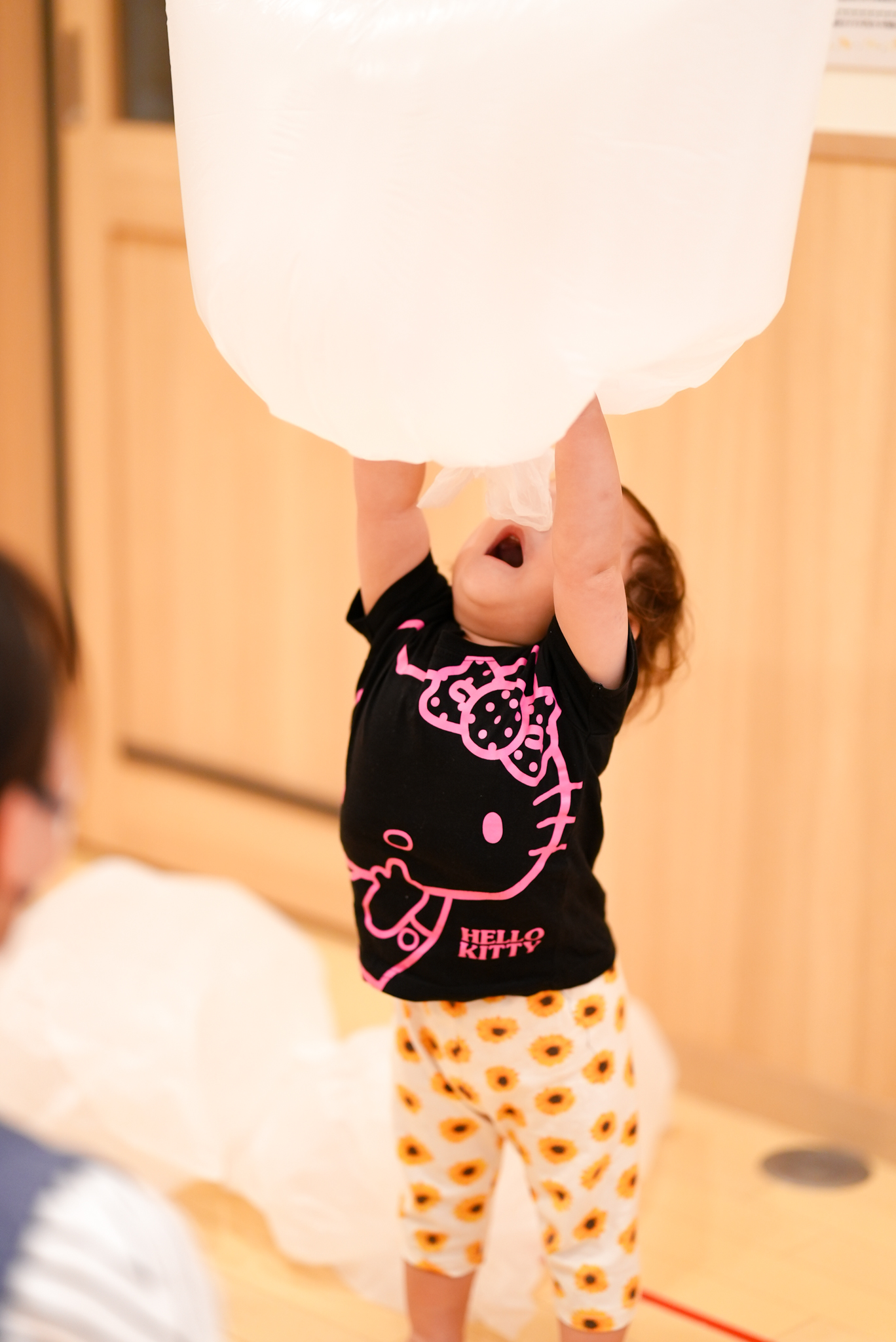 近くで様子を見ていたお友だちも、ふわふわ動くビニール袋の動きに思わず笑顔がこぼれていました♡
