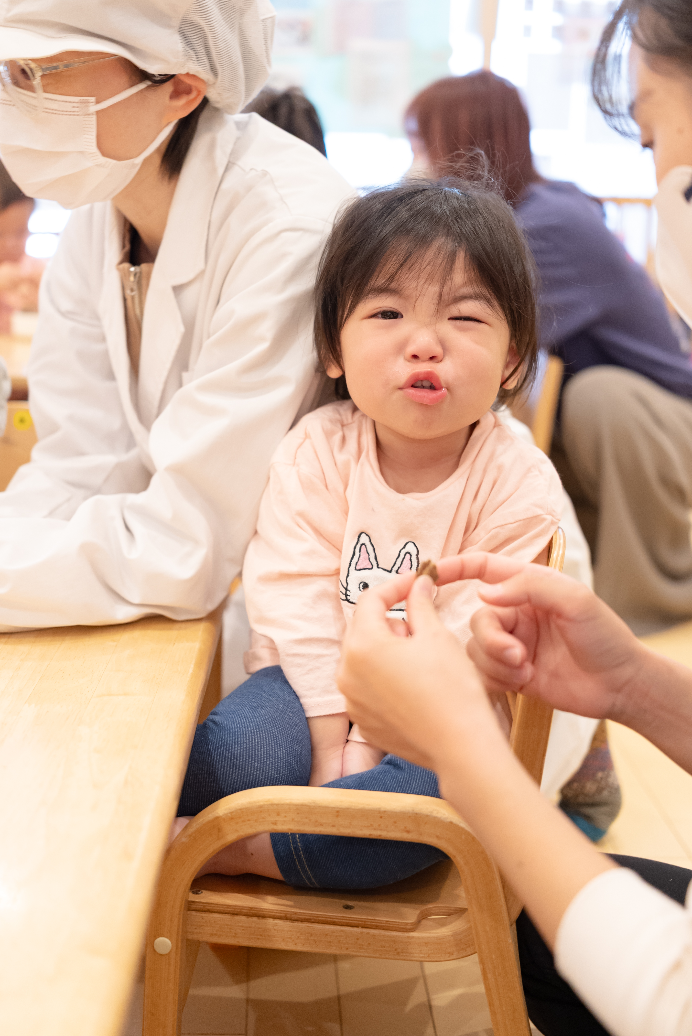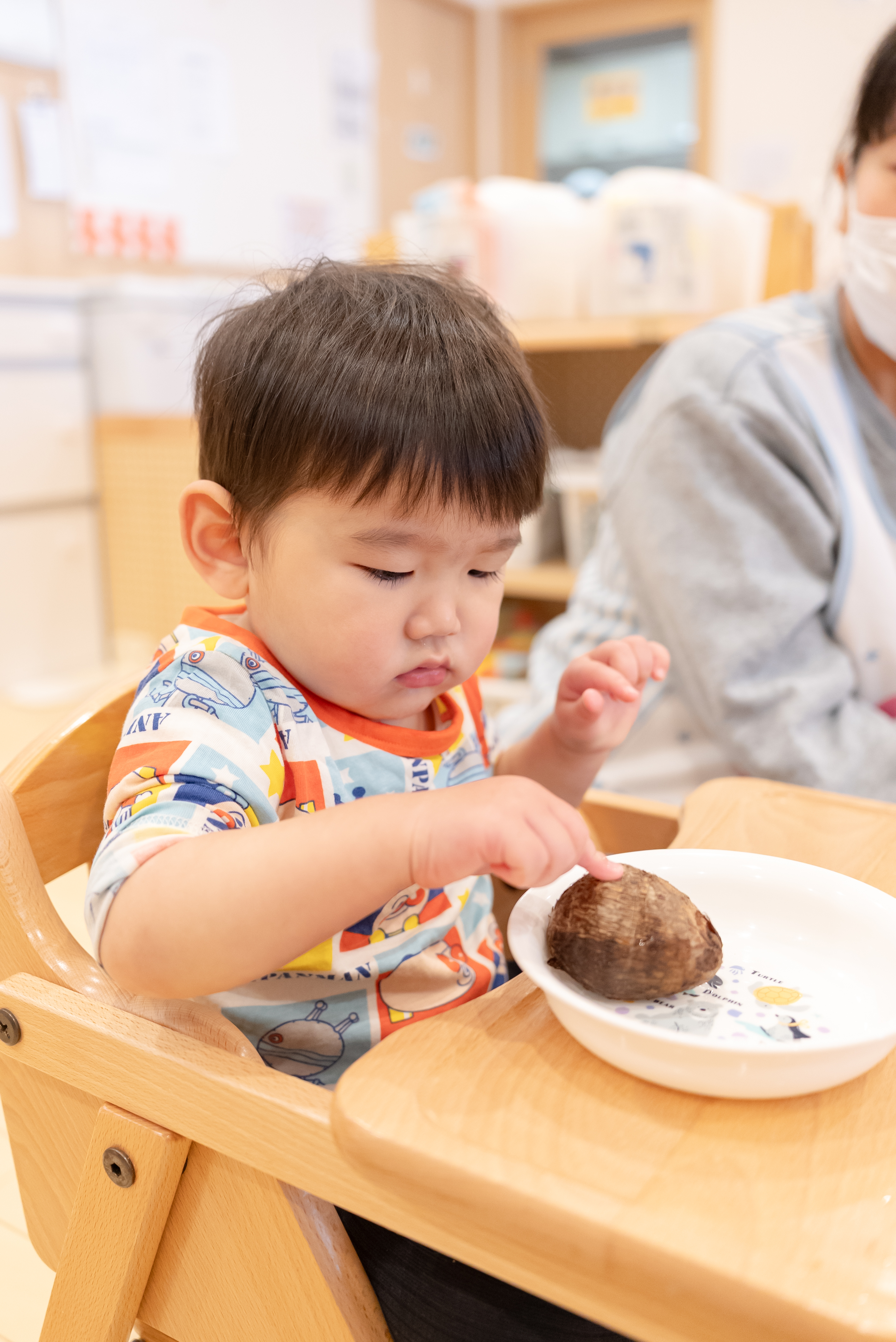 皮の感触やぬめりが気になるお友だちは先生と一緒に観察しましたよ(^O^)