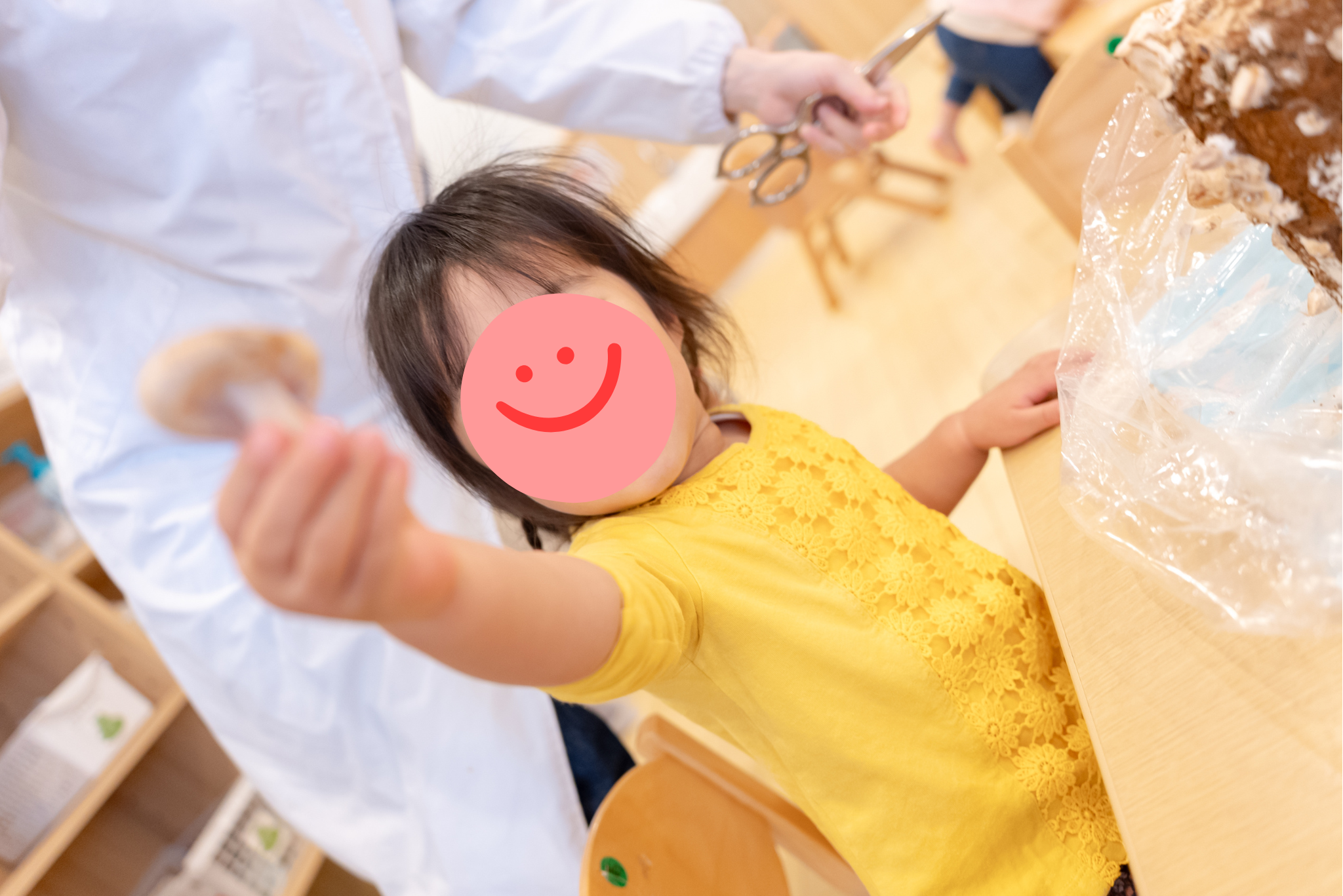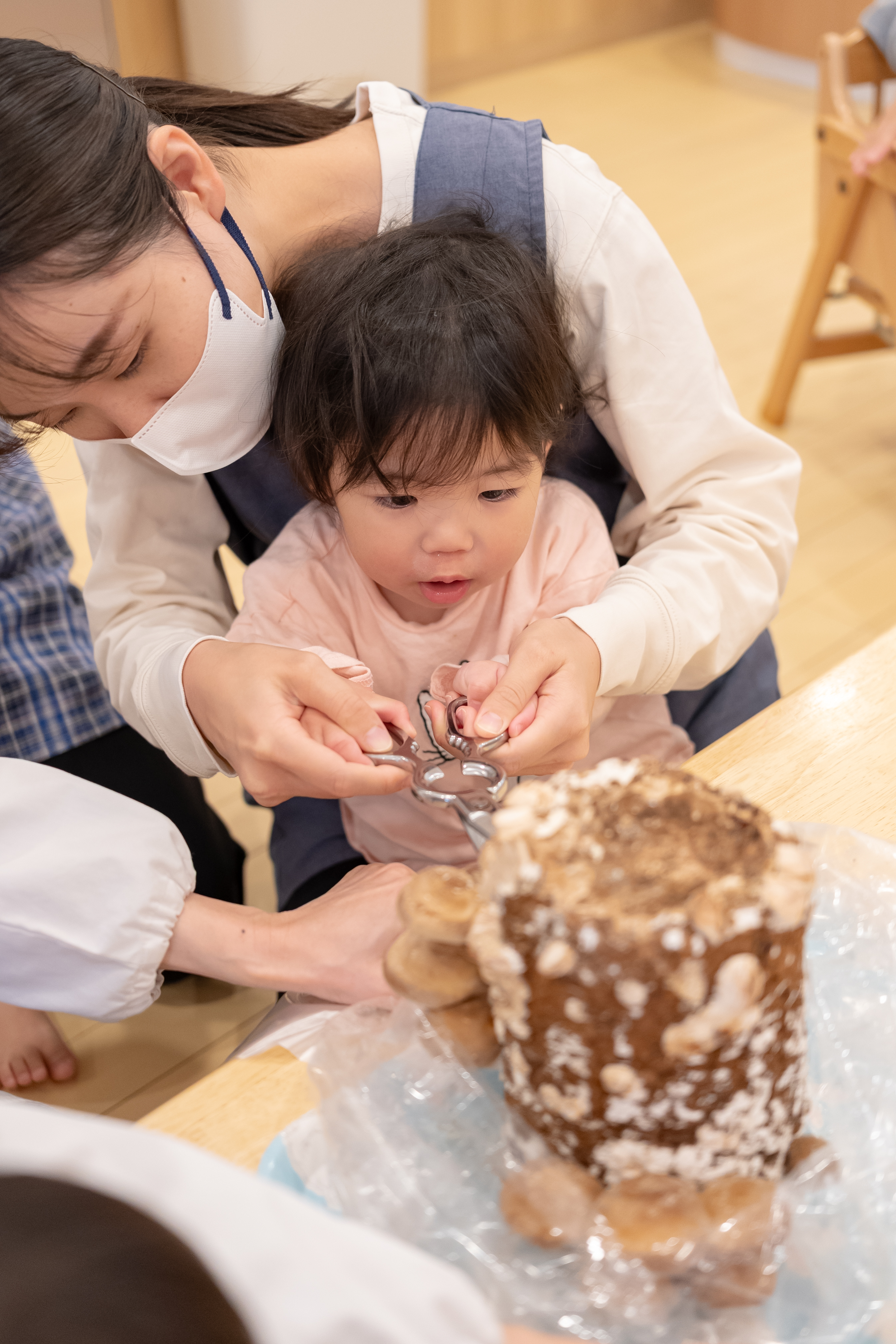 ひかり保育園で育てている椎茸もぐんぐん成長中です!