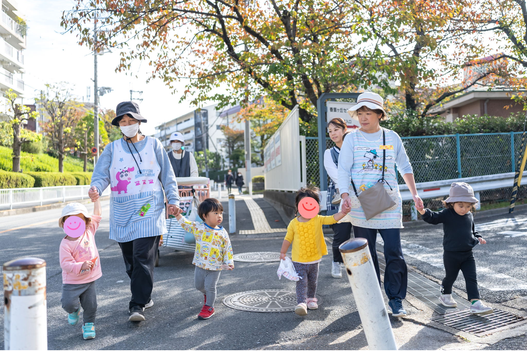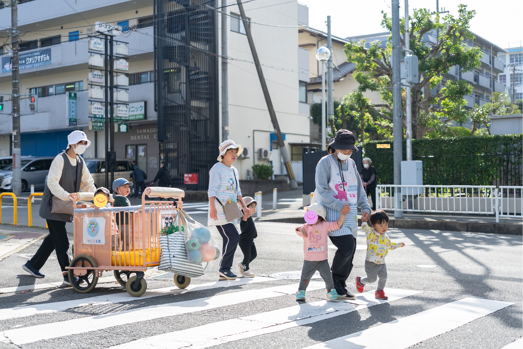 先生と手つなぎのお友だちは、公園までの道のりをしっかりとした足取りで歩いていきます!