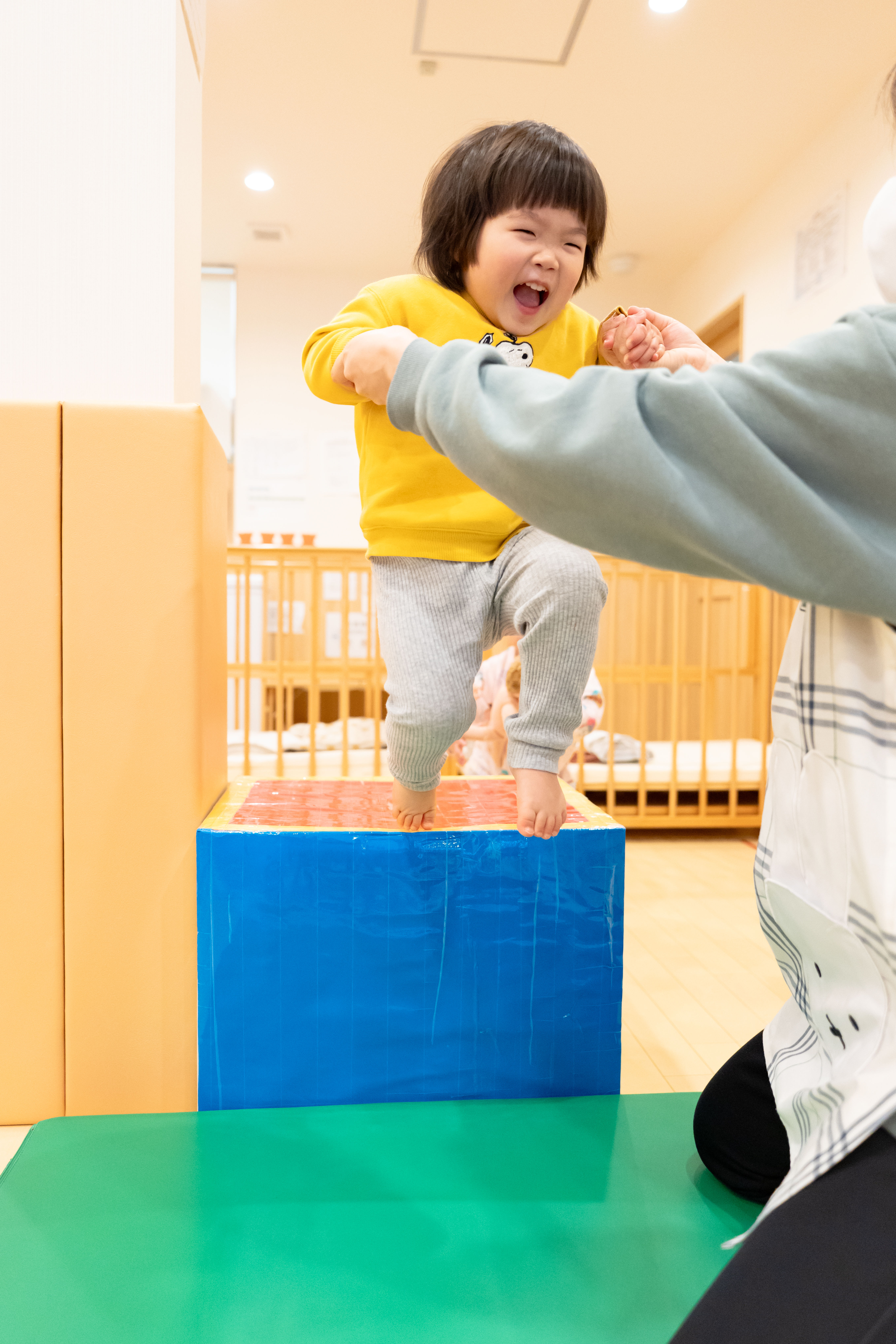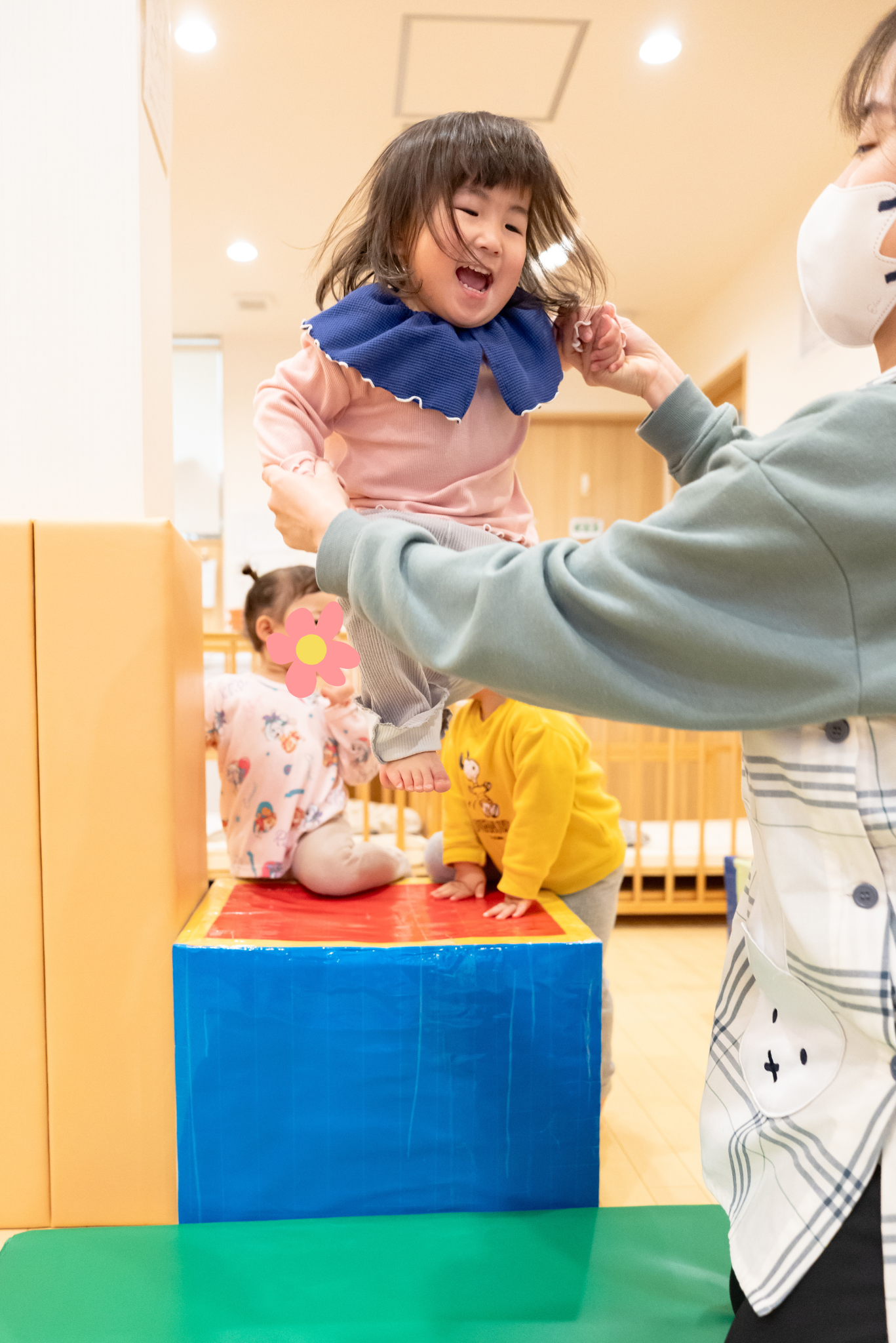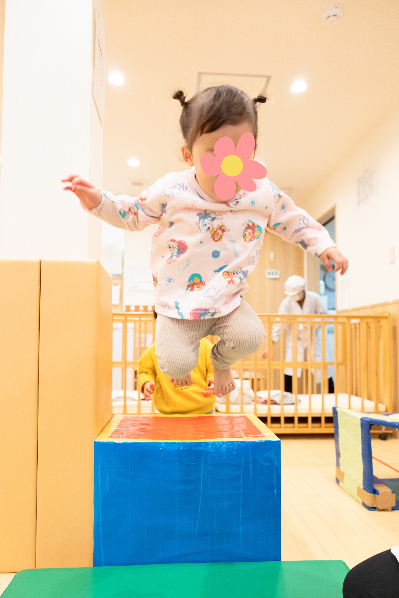 もっと身体を動かしたいというお友だちは、台からマットへ向かってジャンプ!!を繰り返し楽しんでいました(^O^)✨
