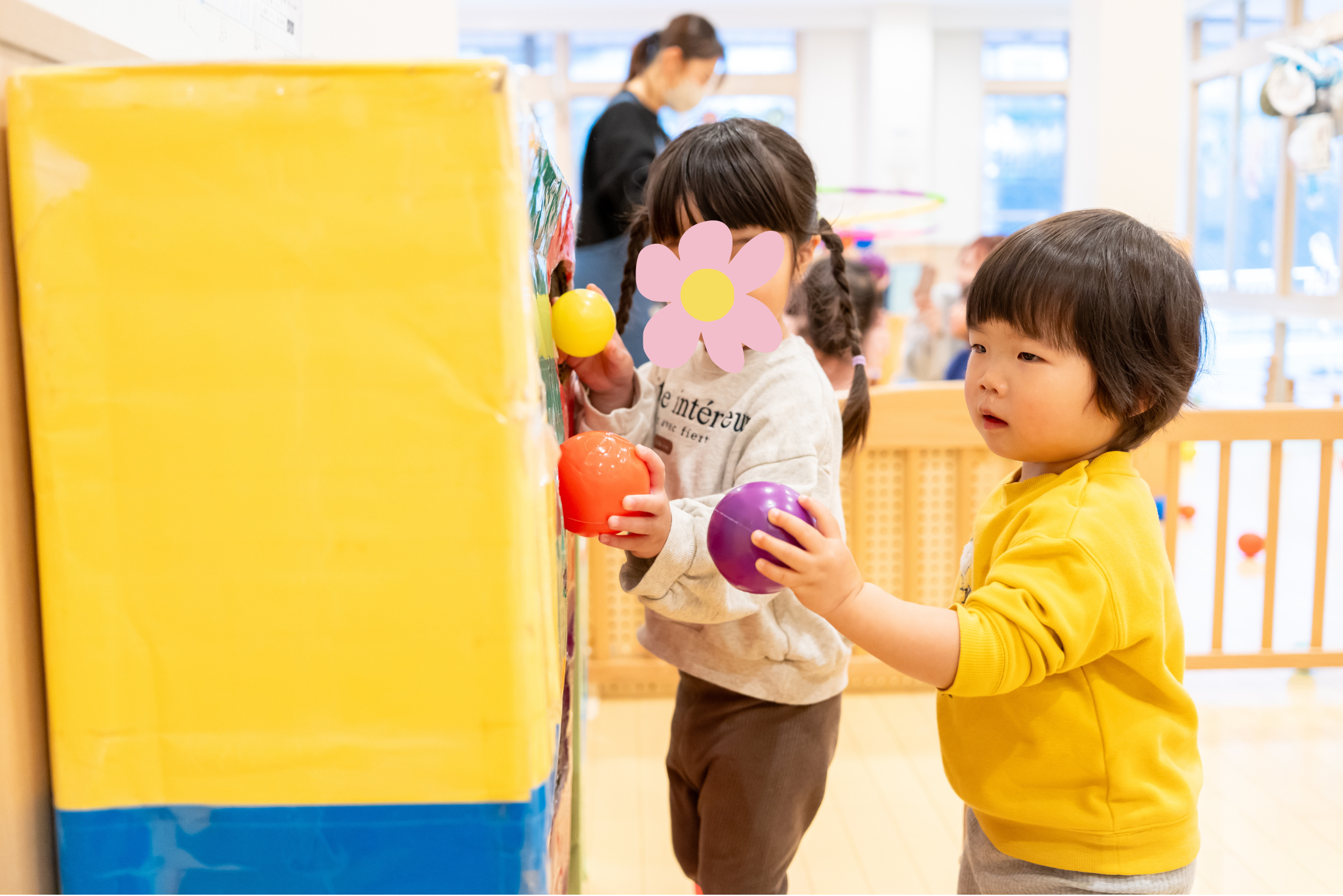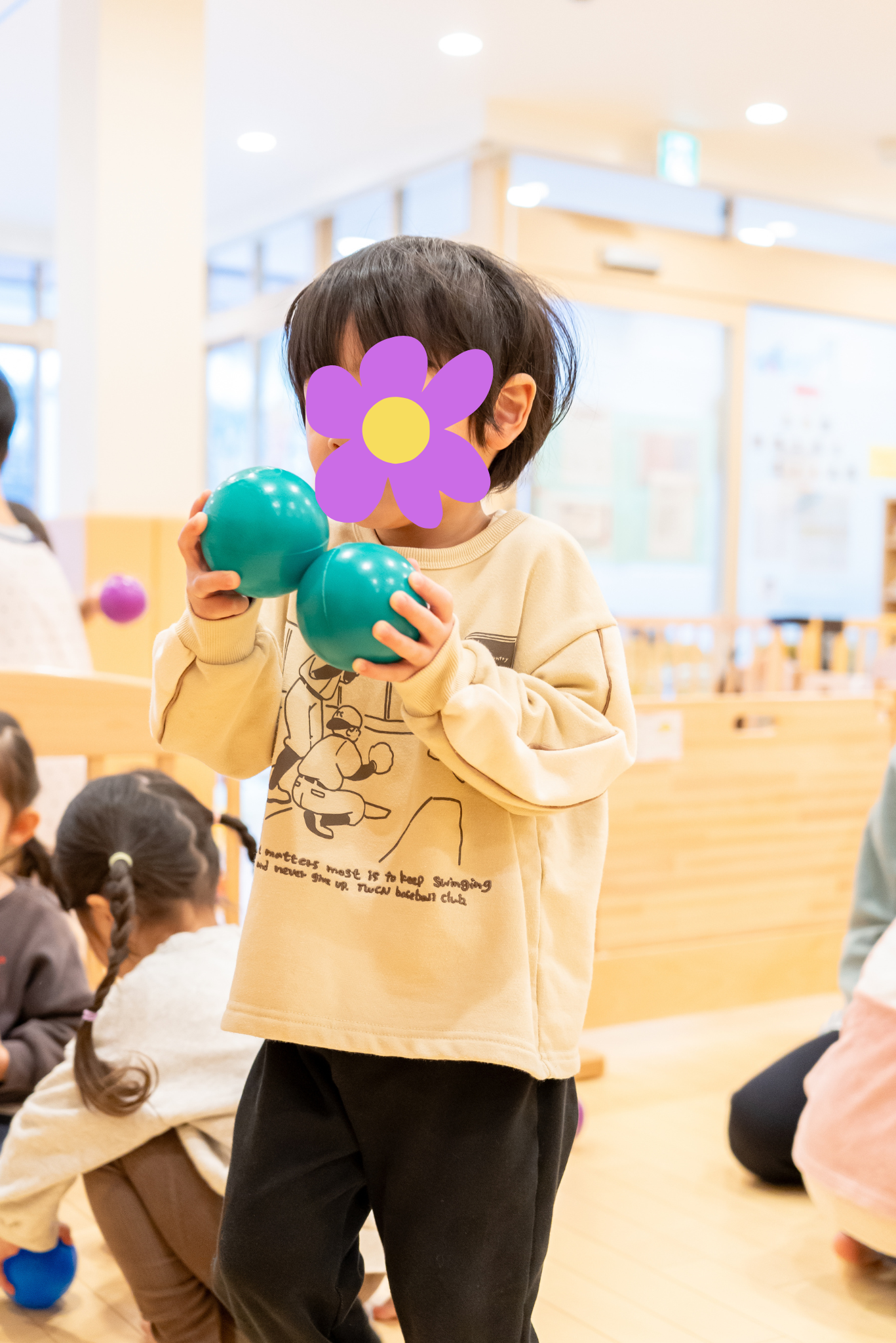 こちらは、お友だち同士で協力してボールを集めを楽しんでいました(*^^*)