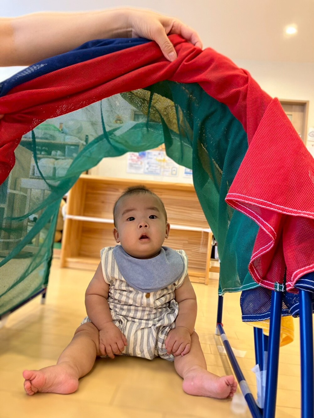 「よーい、どん!」の合図で障がい物走のスタートです!最初はトンネルくぐり☆