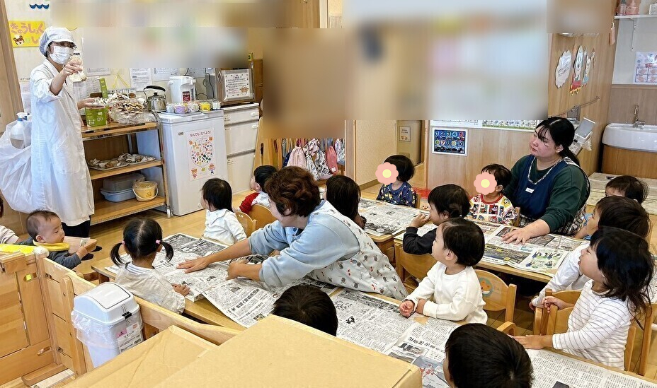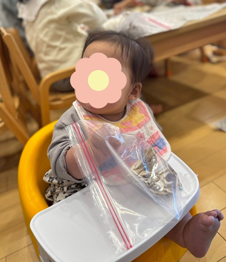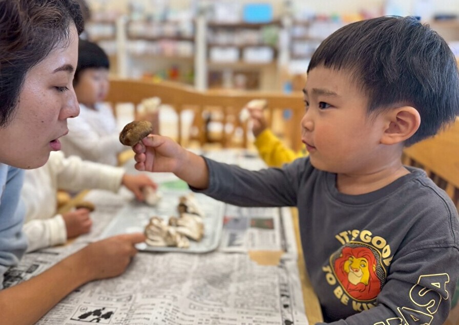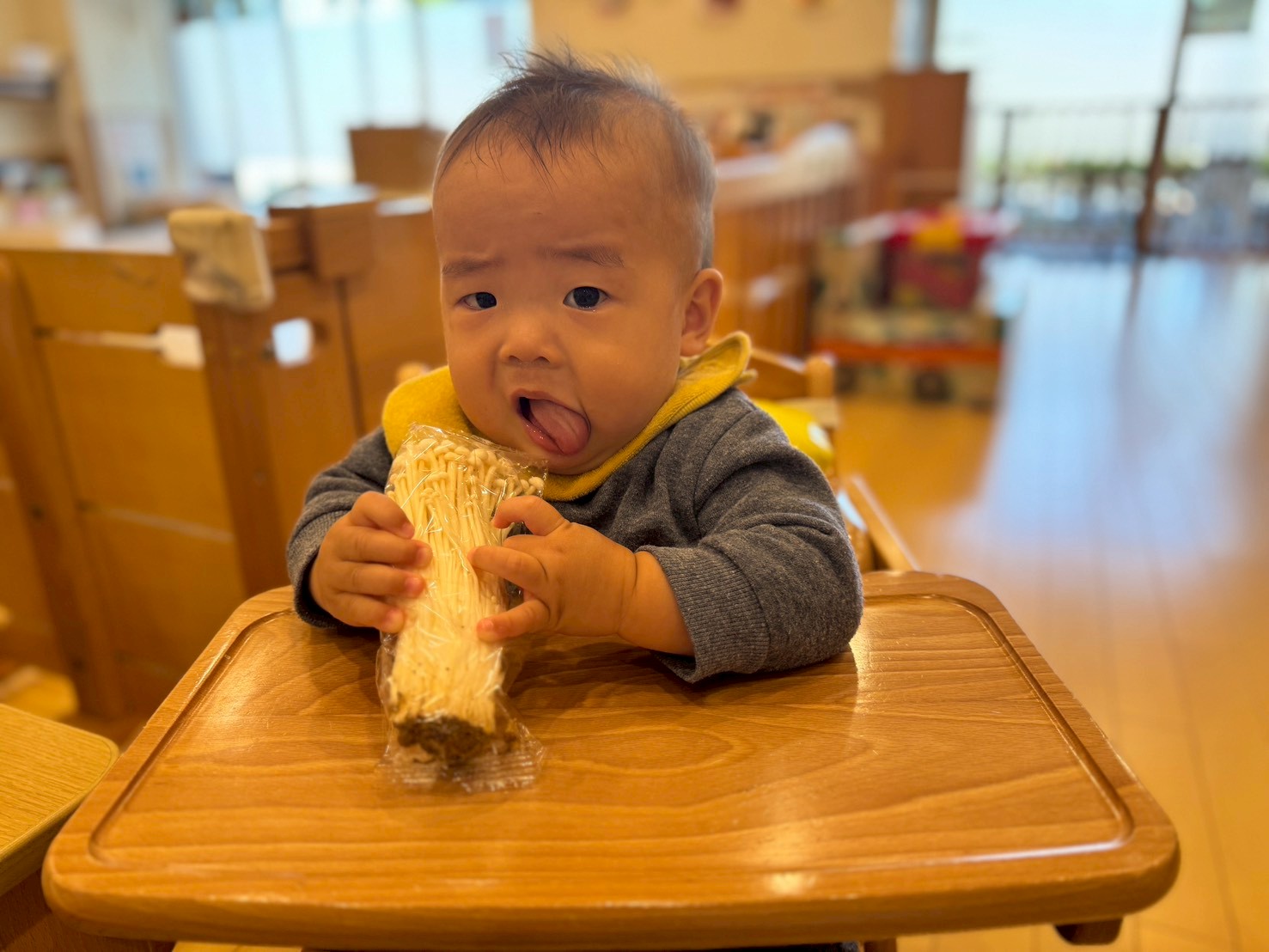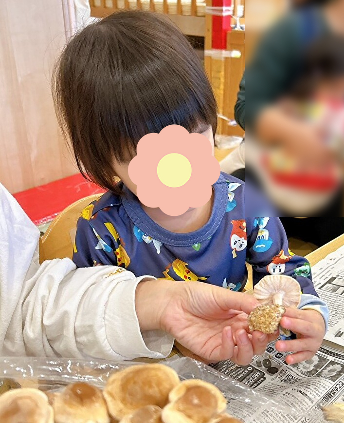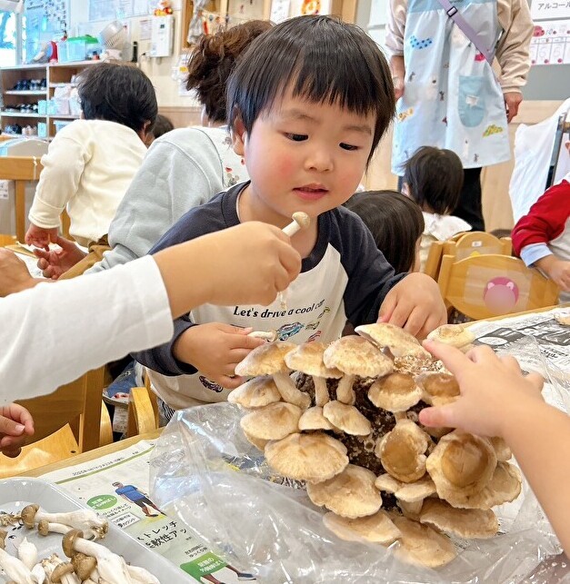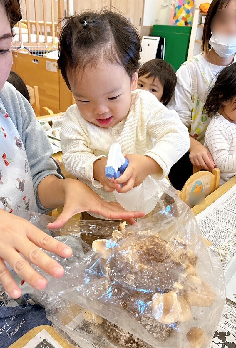 ひよこぐみさんは袋に入ったきのこを不思議そうに観察したり触ったりしていました♪