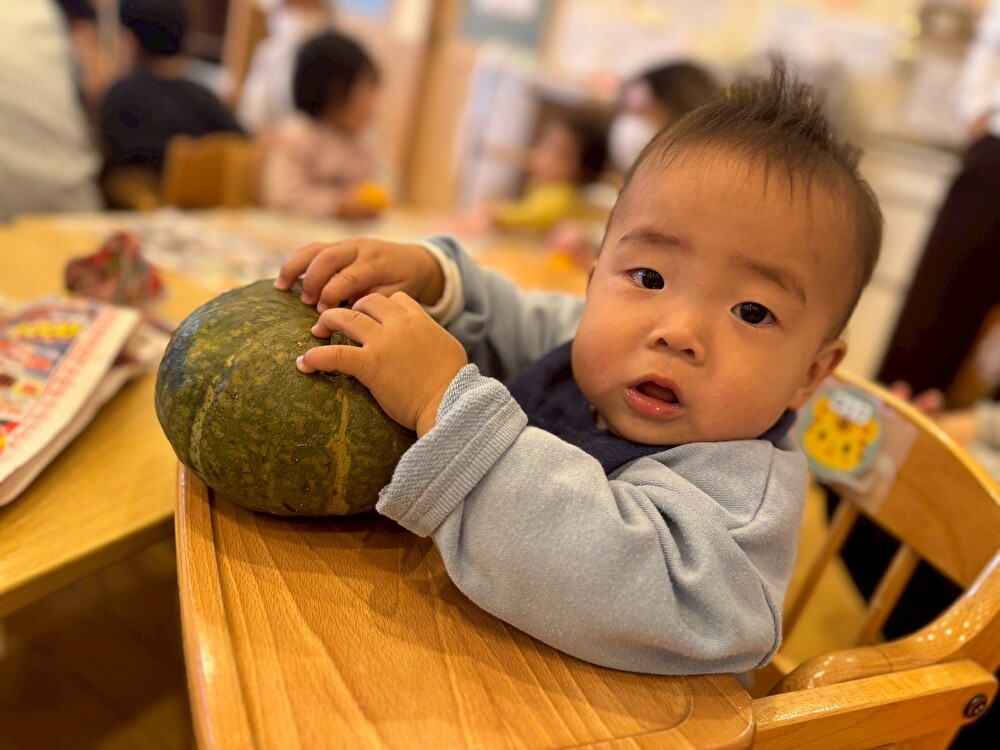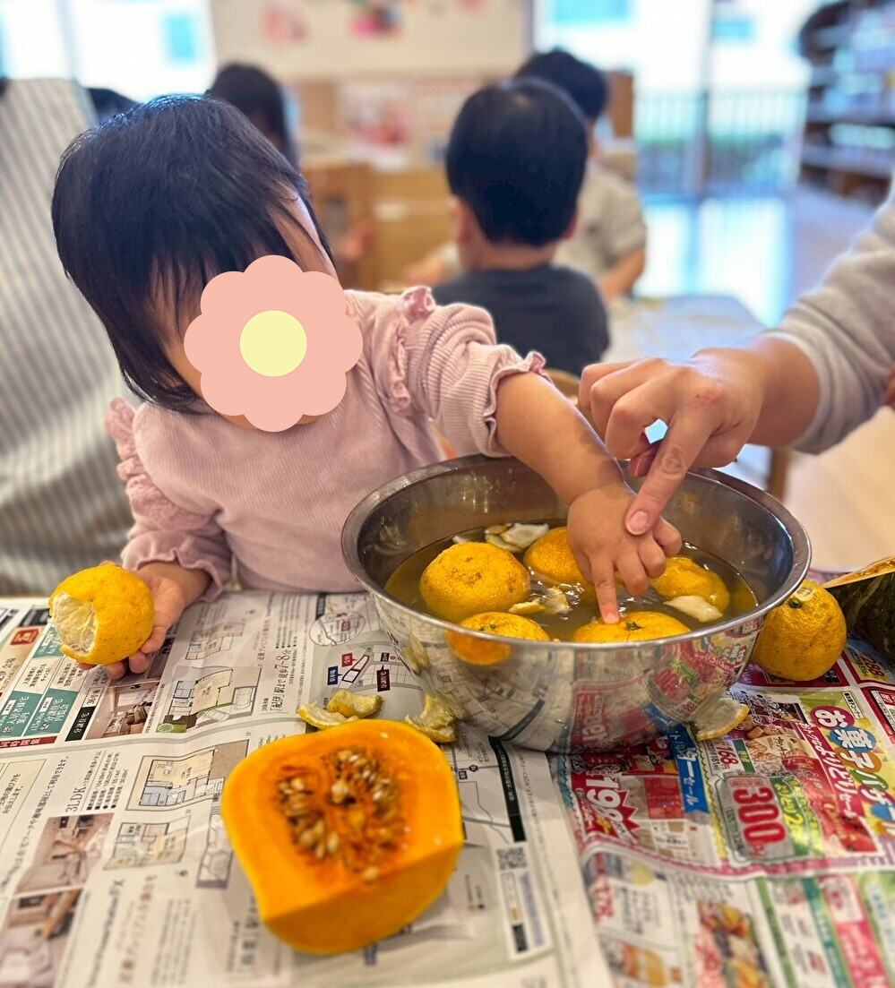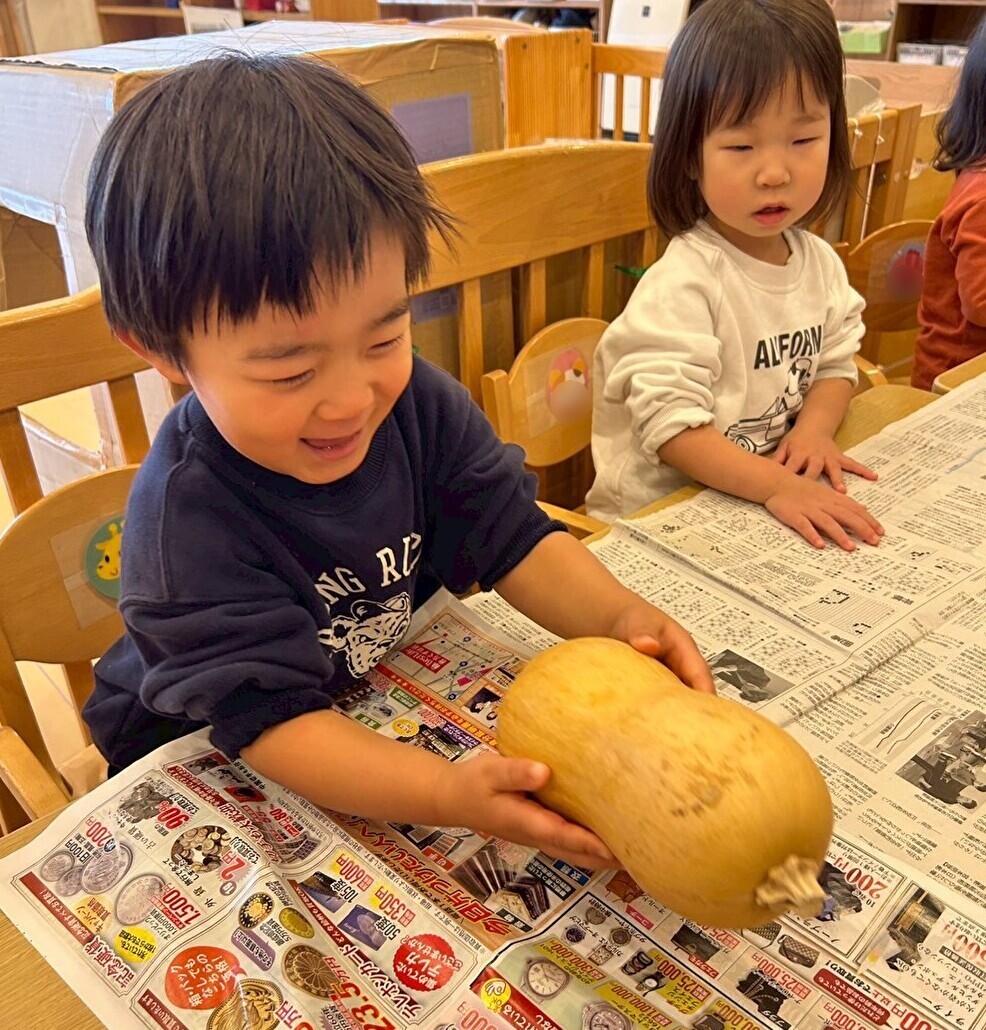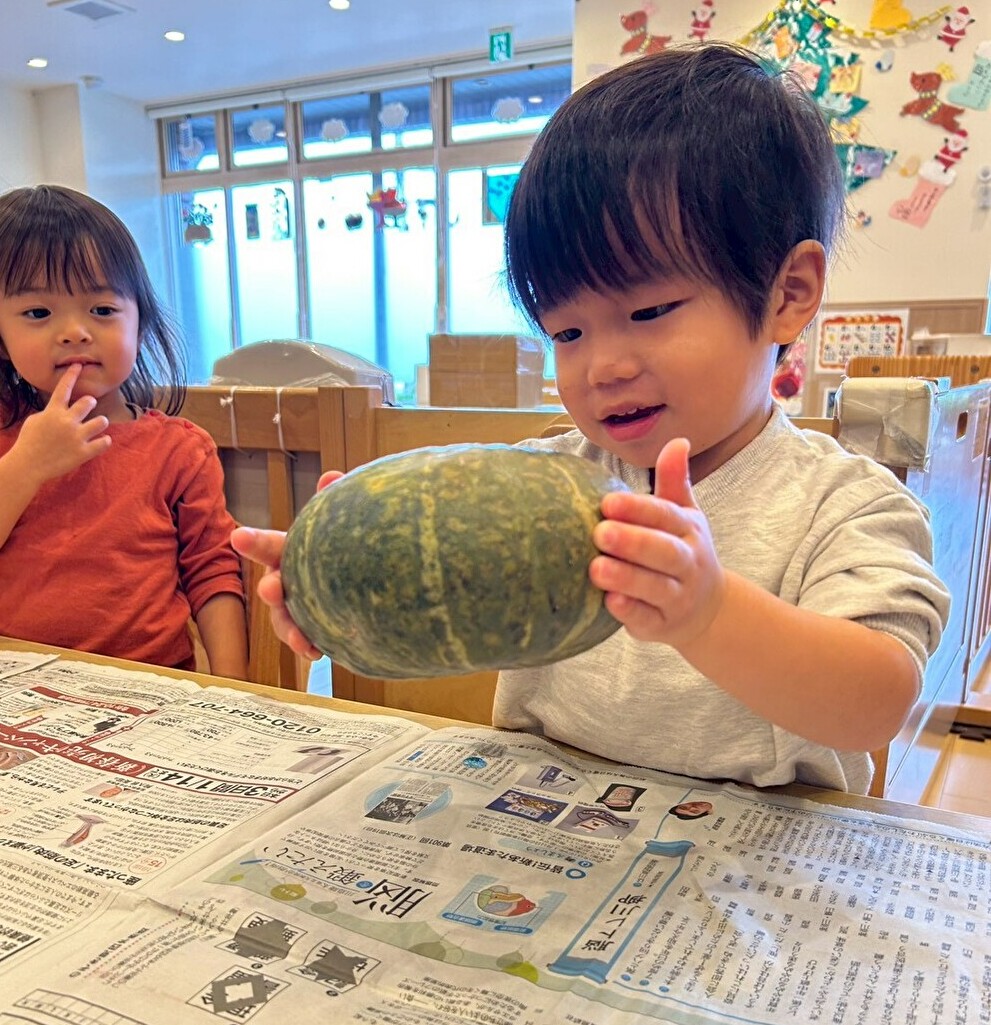 給食の先生が、冬至の食べ物の「ゆず」と「かぼちゃ」を準備してくれました☆