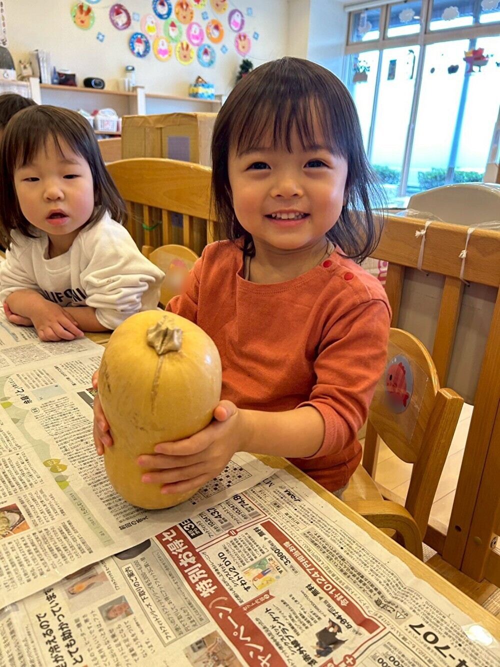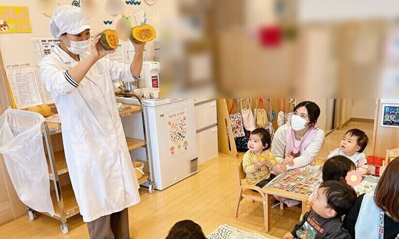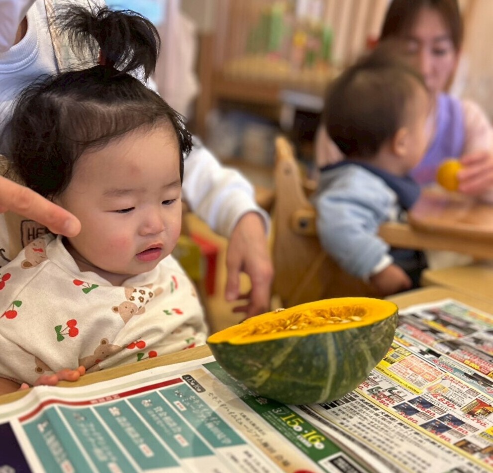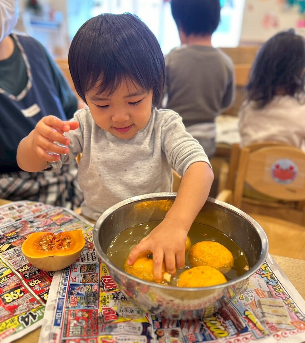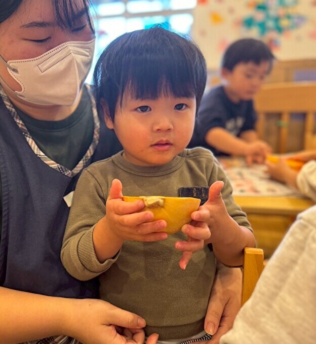 給食の先生が、冬至の食べ物の「ゆず」と「かぼちゃ」を準備してくれました☆