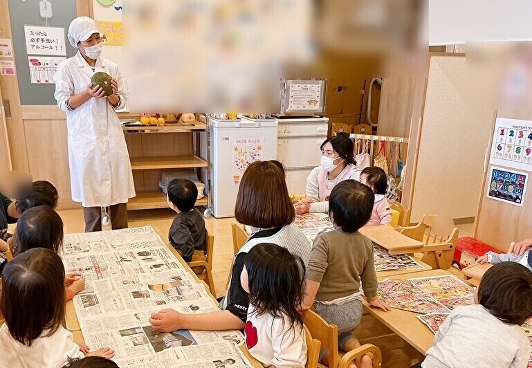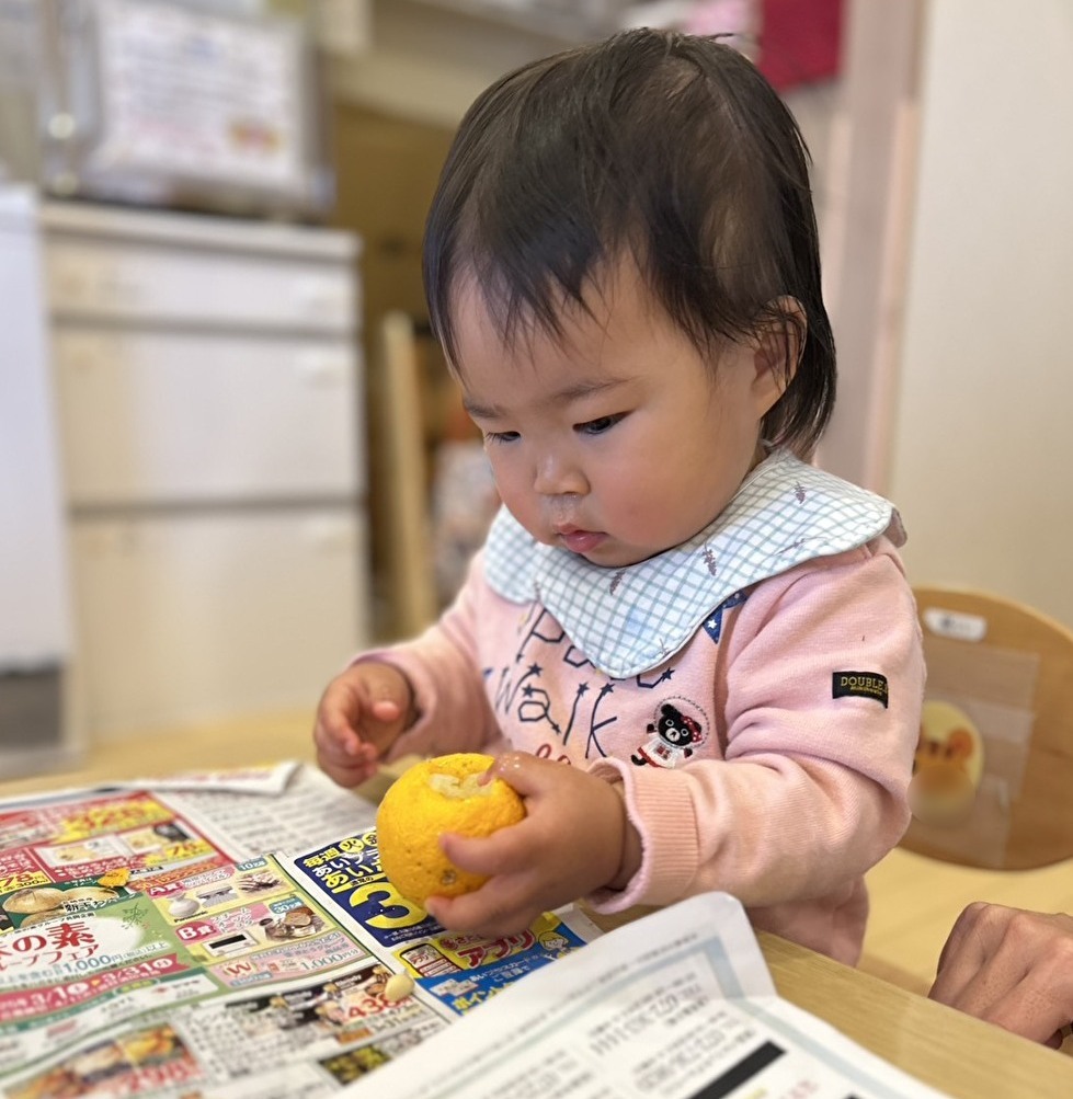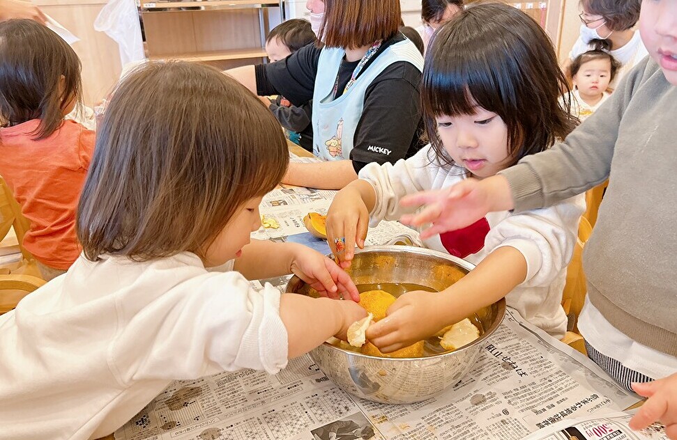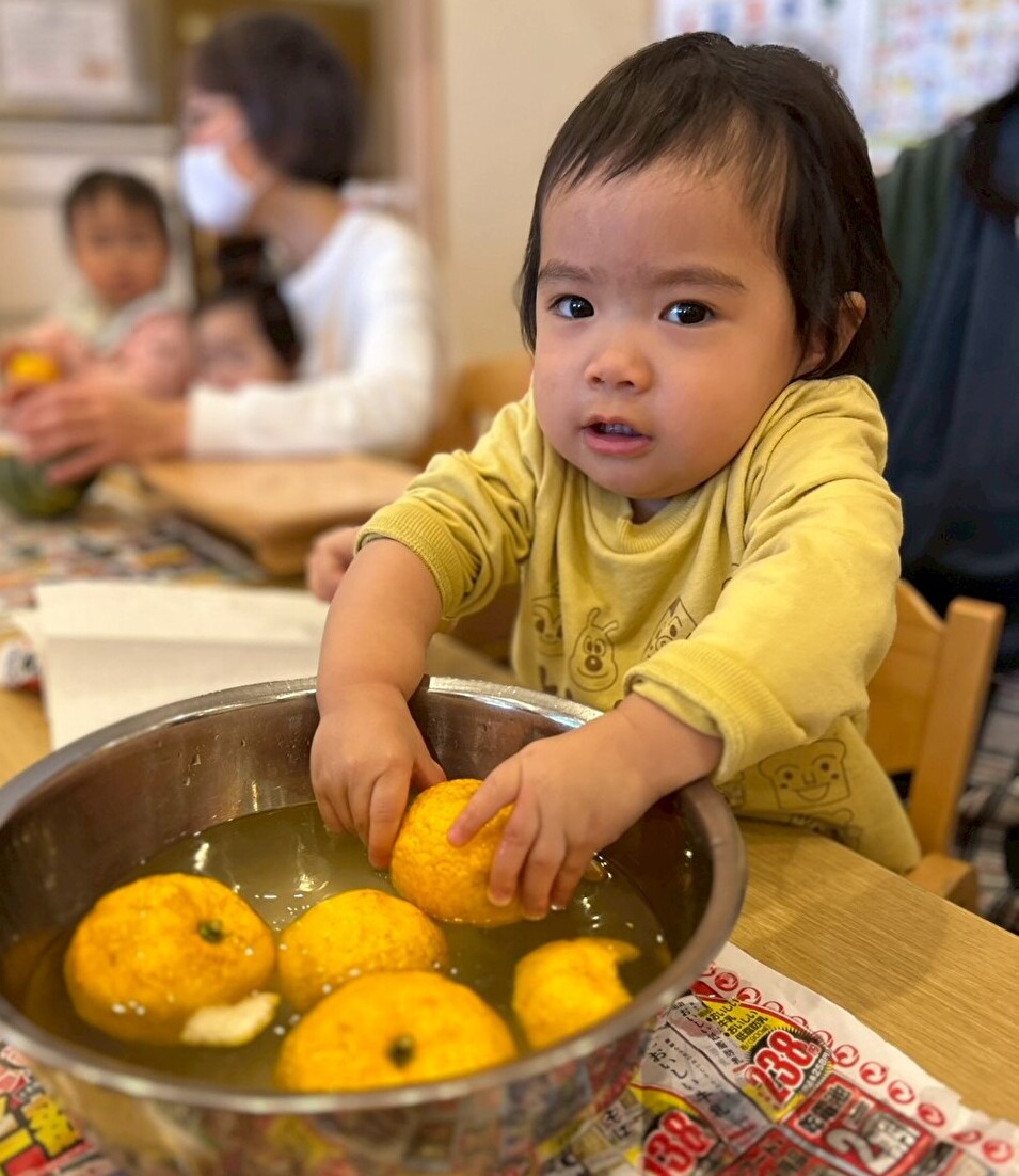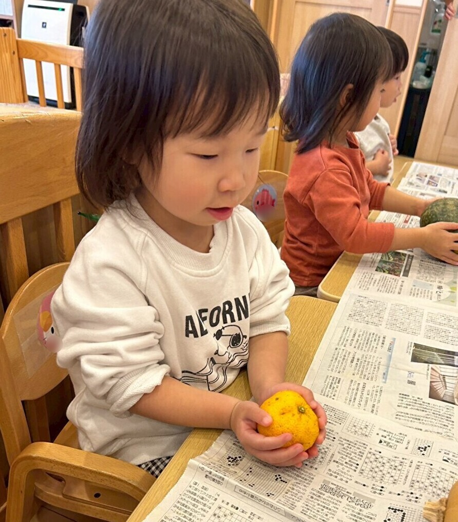 今日は食育の一環として、冬至の食べ物の観察をしました。