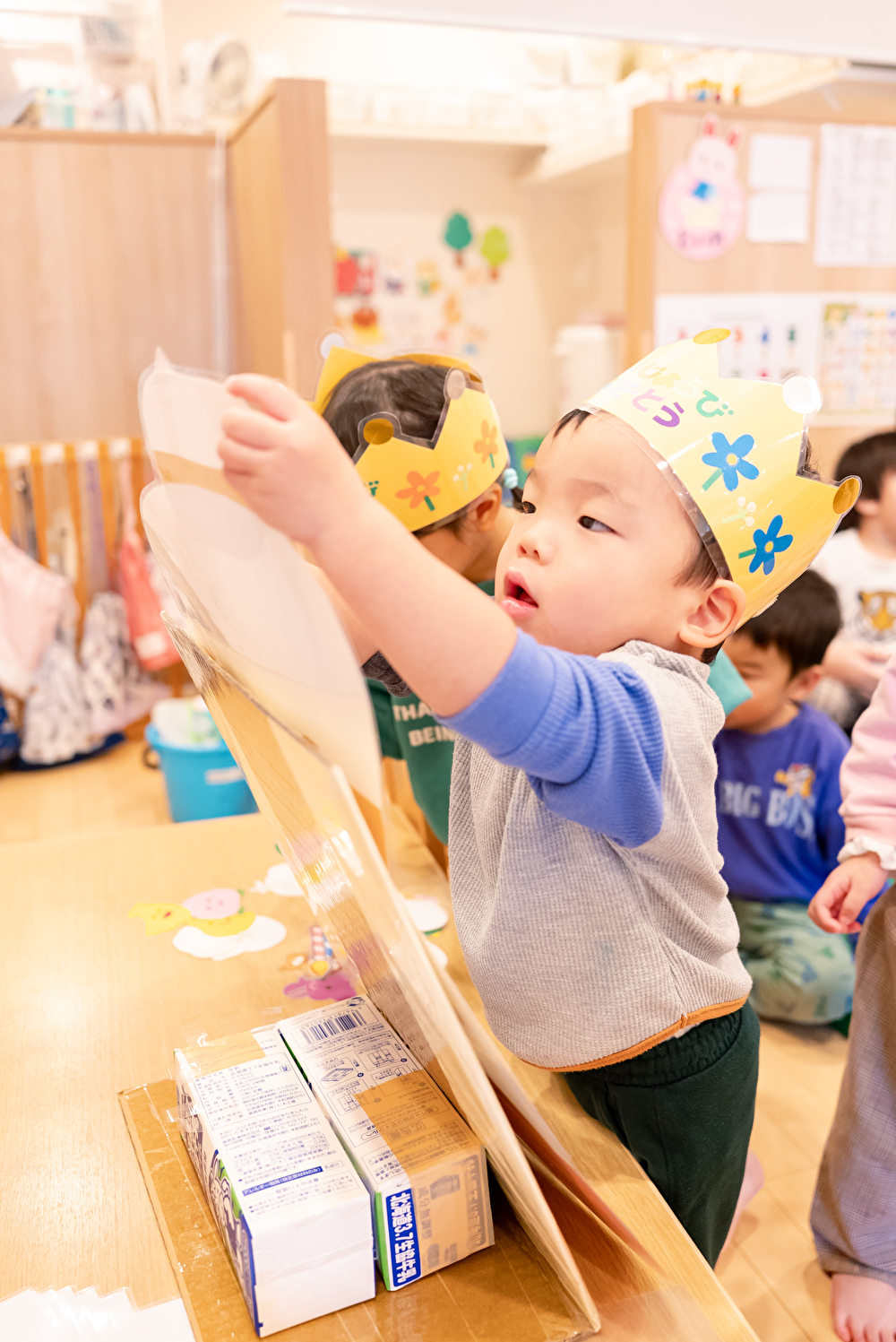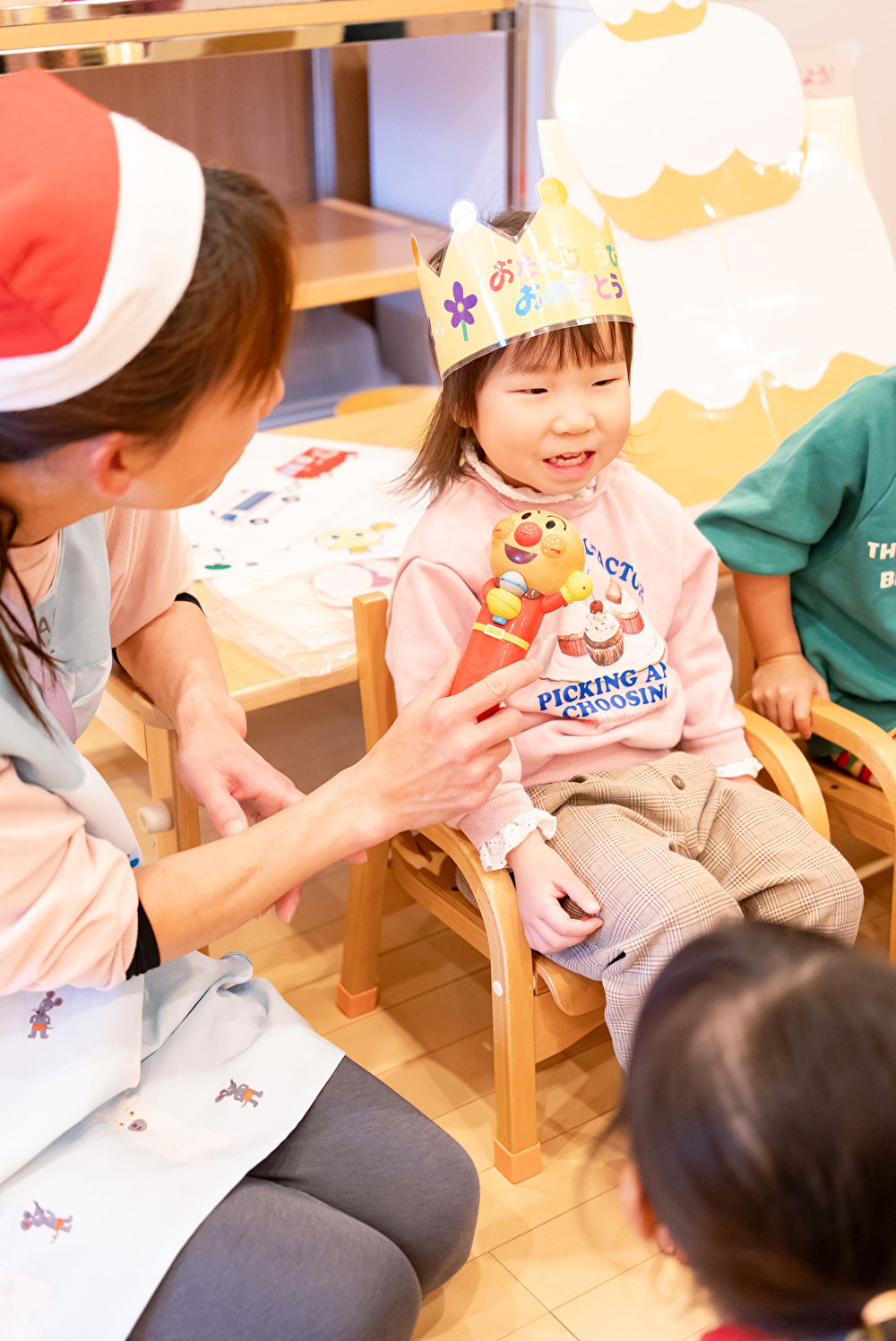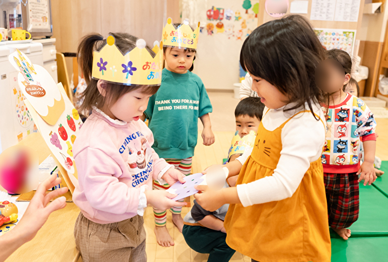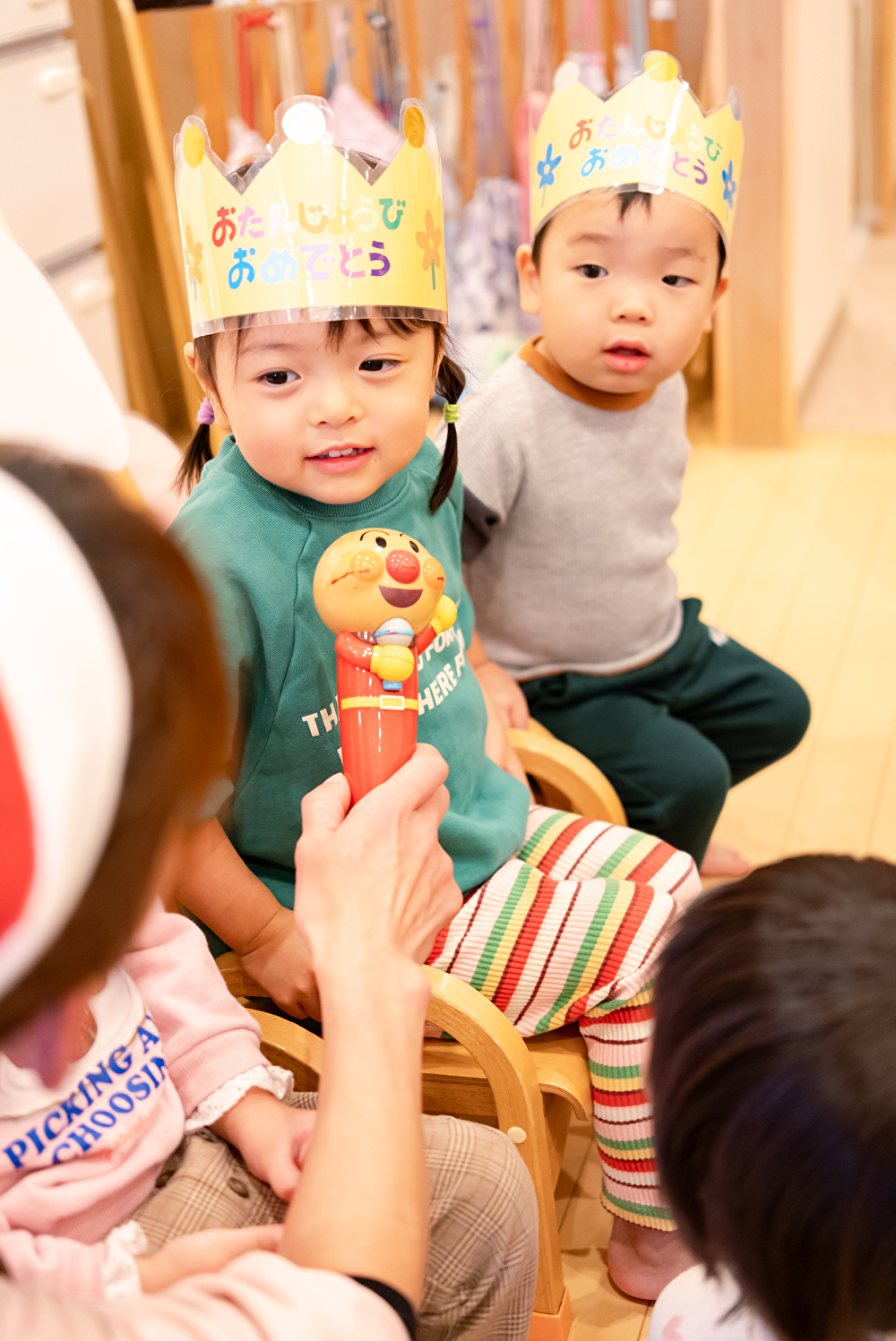 誕生日会の主役は、元気いっぱい3歳になる3人のうさぎ組のお友だちです!