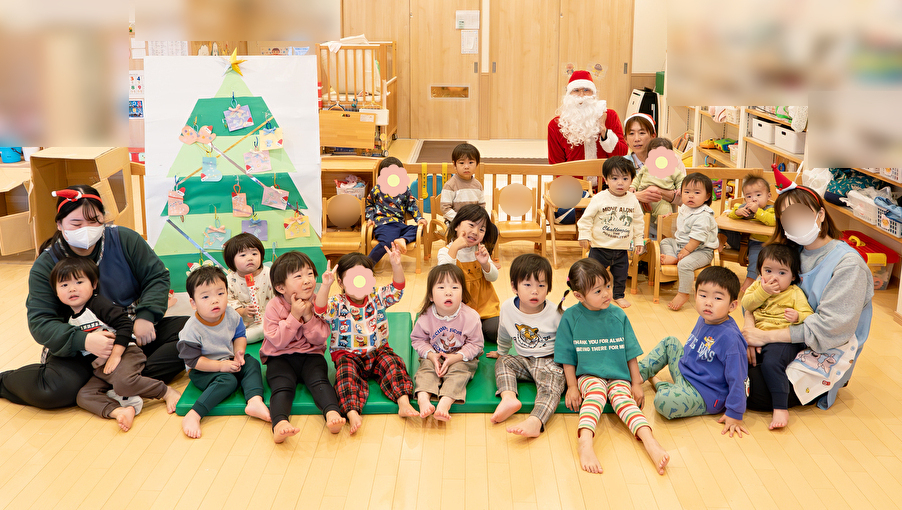 サンタさんと一緒に『あわてんぼうのサンタクロース』を歌って、集合写真を撮りました✨