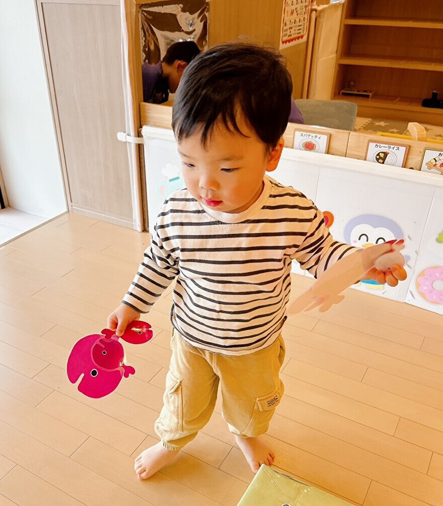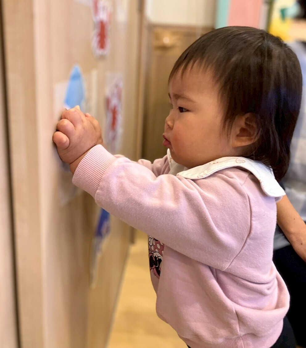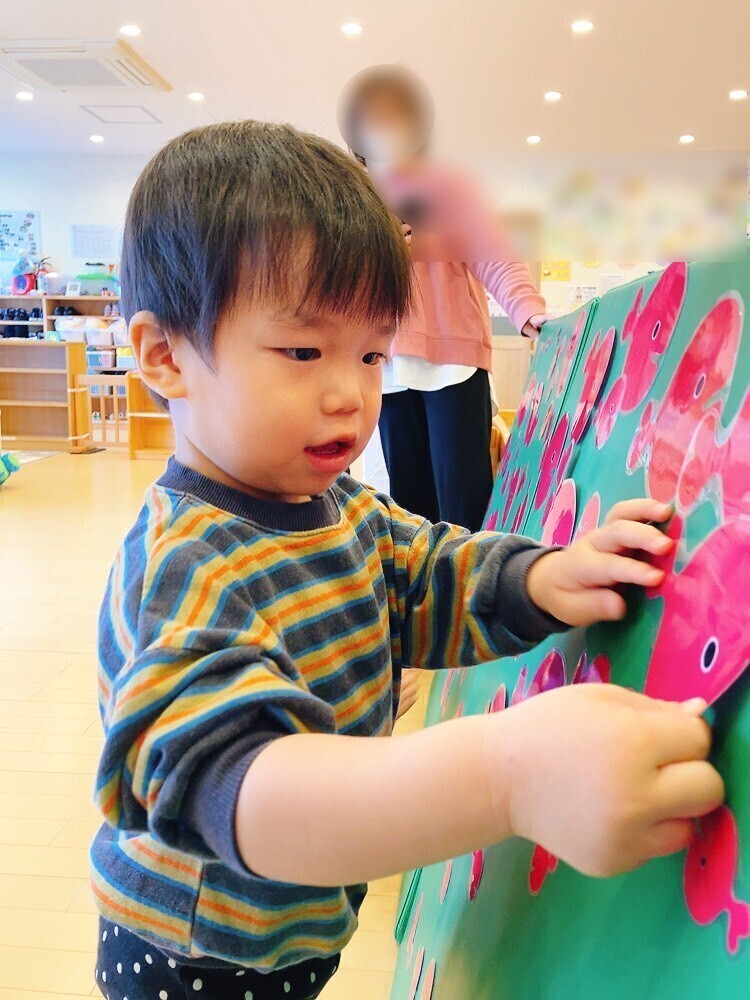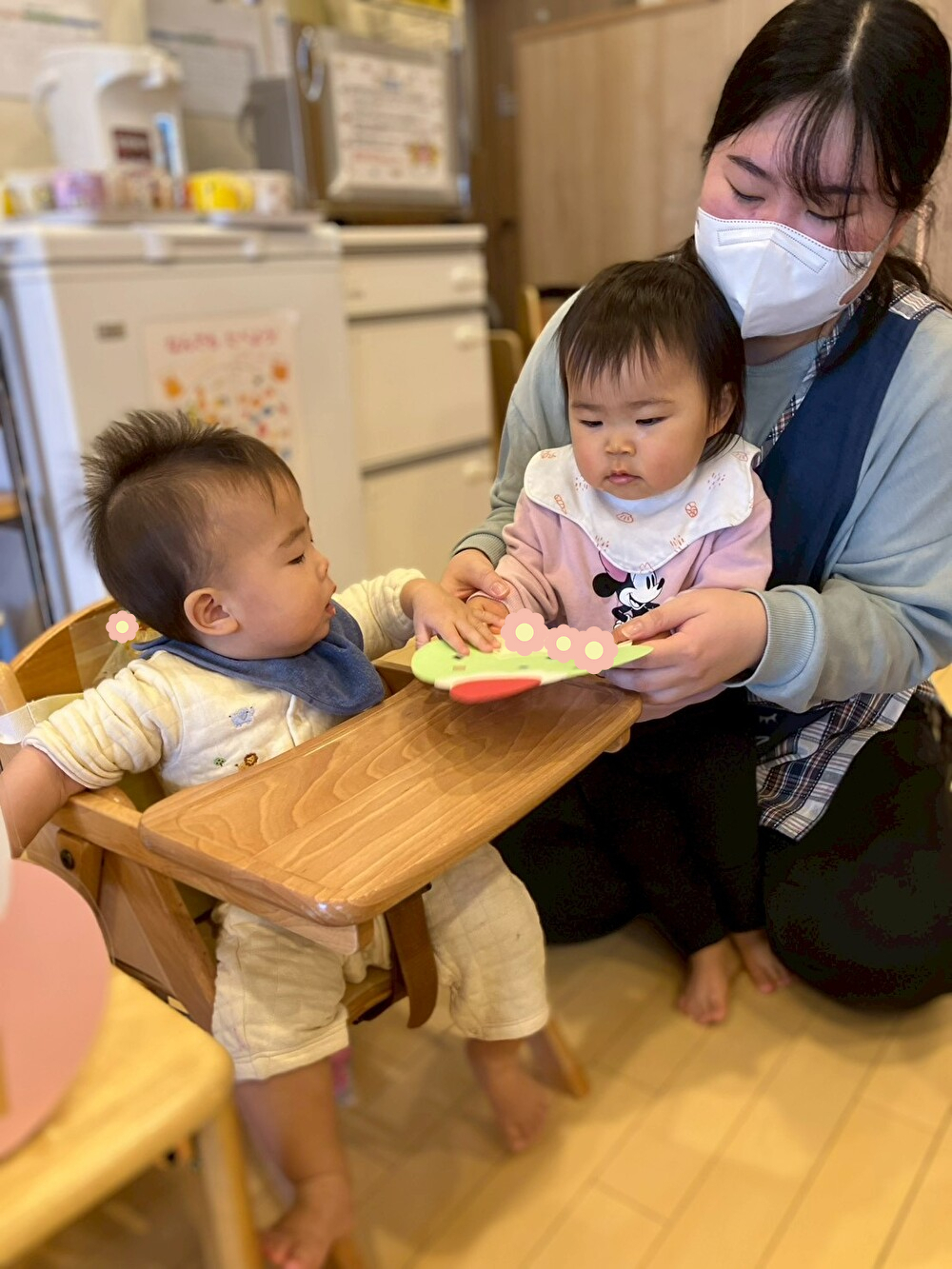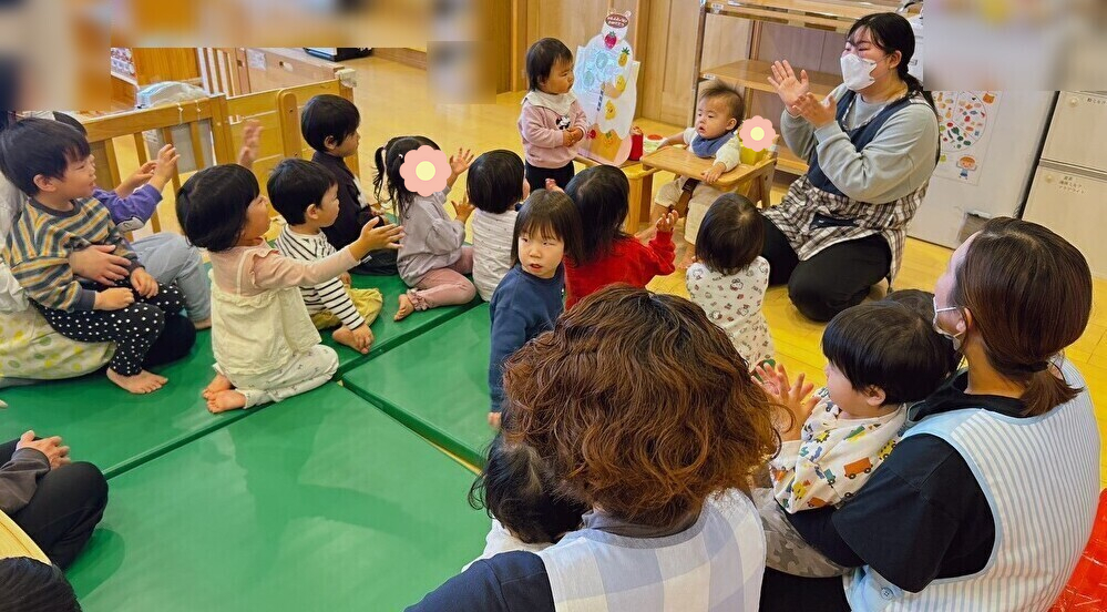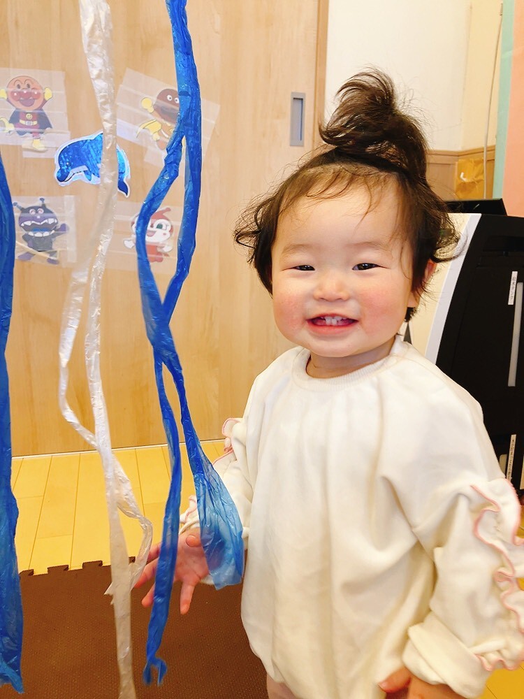 今日は1月生まれのお友だちの誕生日会をしました♪今日の主役は、ニコニコ笑顔がステキな1歳になるひよこ組のお友だちです♡