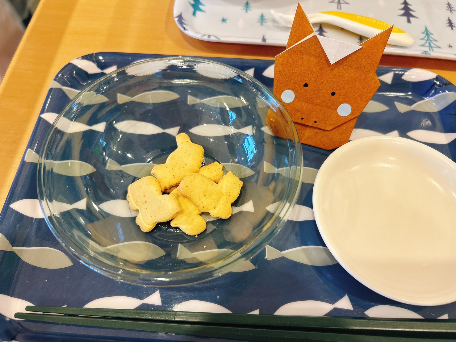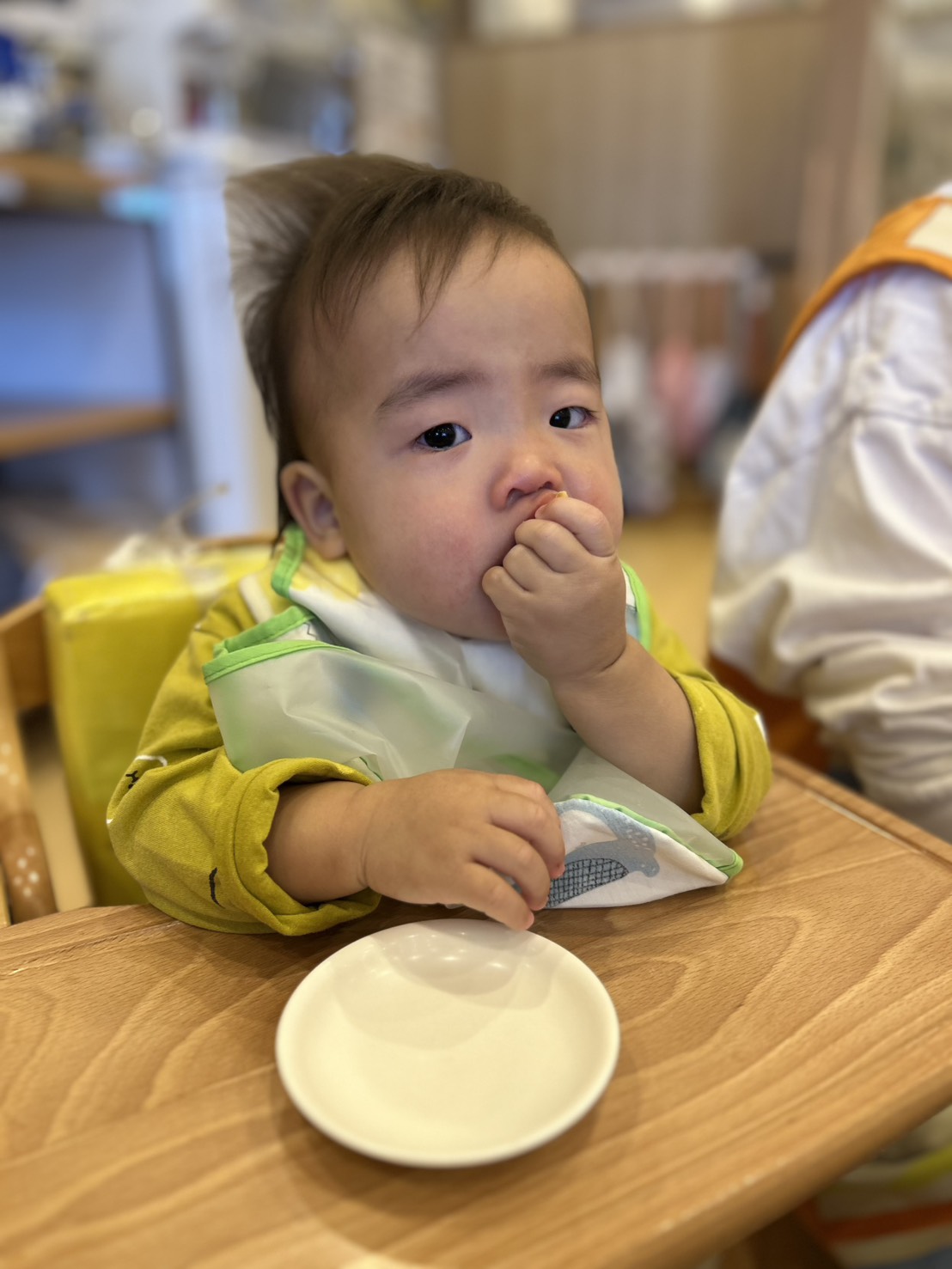 給食の先生から誕生日のお友だちに、かわいい折り紙のお馬さんのプレゼントがありましたよ!!後期食のおやつは「人参とさつまいもビスケット」でした♪ #おりがみの時間