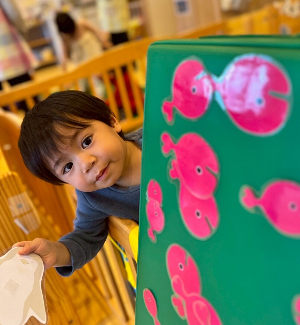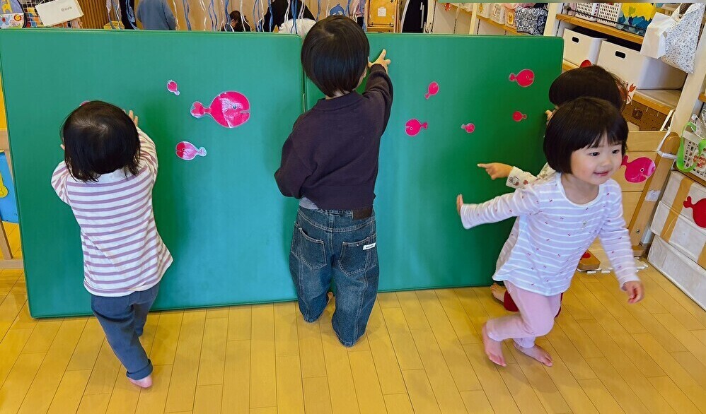 あれあれ?絵本から飛び出したきんぎょがお部屋の中に逃げたみたい!みんなで探しに行こう!「もういーかい」準備はOK?